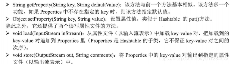 24)Properties类是Hashtable类的子类,其key,value都是String类型。该类有如下5个方法来操作Properties里的key,value值