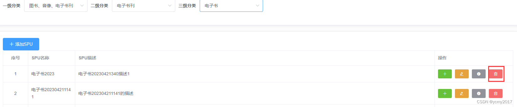 上一篇文章管理后台项目-03-SPU列表-增删改SPU-获取SKU_ycmy2017的博客-优快云博客内容较多,交互逻辑有点复杂,所以分两篇文章编写,这篇文章继续编写spu模块没有开发完成的功能。