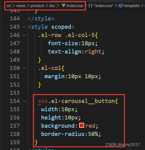 这里我们将轮播图上的小点点在scoped使用深度选择器,实现样式穿透>>>