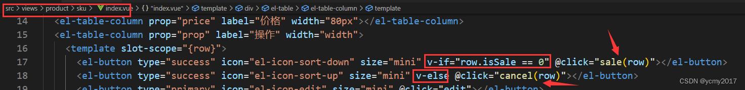 当我们点击列表中操作的上架下架按钮时,需要调用相关的接口向服务器发送请求,并且改变图片箭头的方向,这里需要添加一个变量来控制。