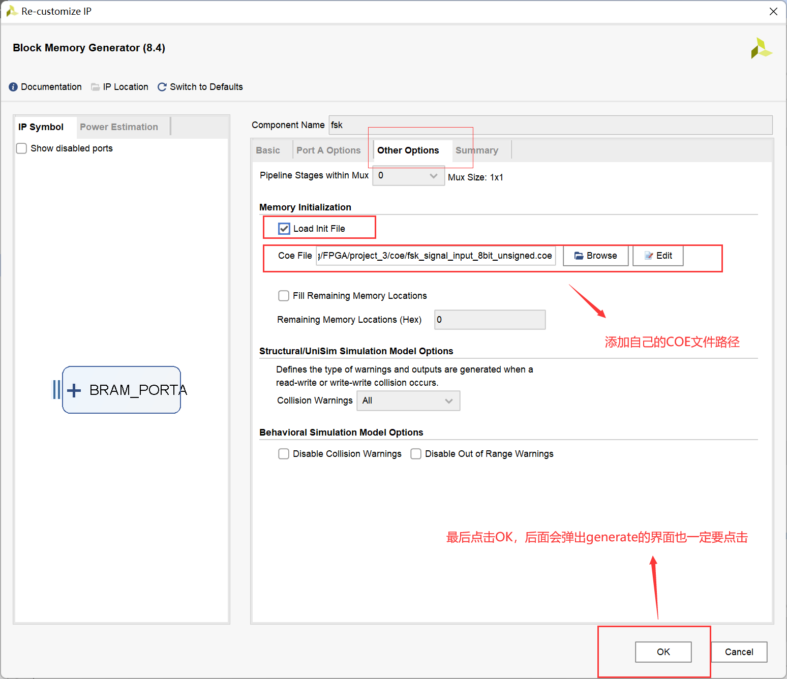 会生成在左边图片上的COE文件,可以利用COE文件导入到vivodo。
