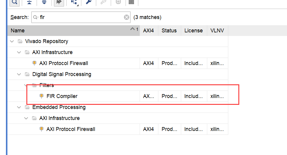 导入至IP核,直接搜索fir就可以,选自FIR COmpiler