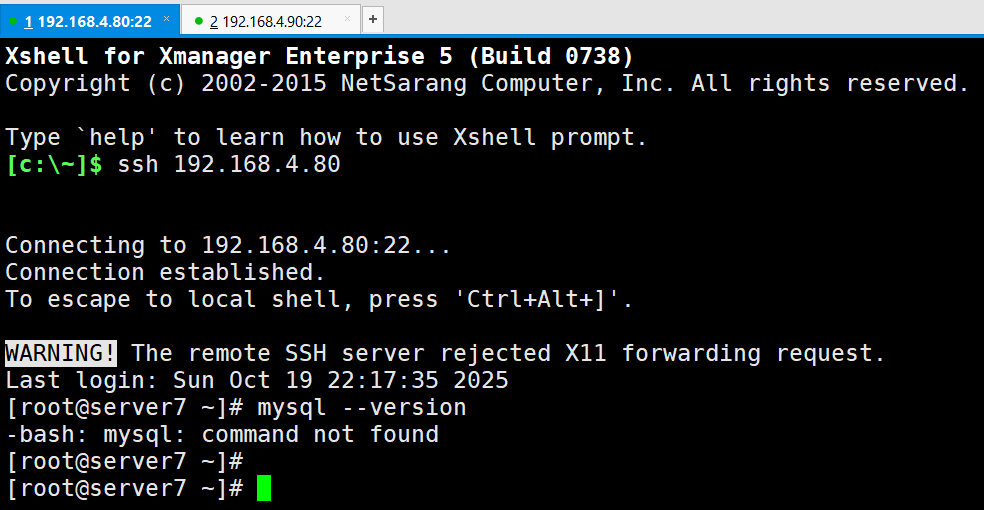 从零开始克隆两台虚拟机,更改IP,并启动xshell连接上,这里4.80为master,4.90为slave