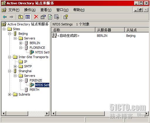 站点和服务中查看这个域控制器和它的复制伙伴是否可以