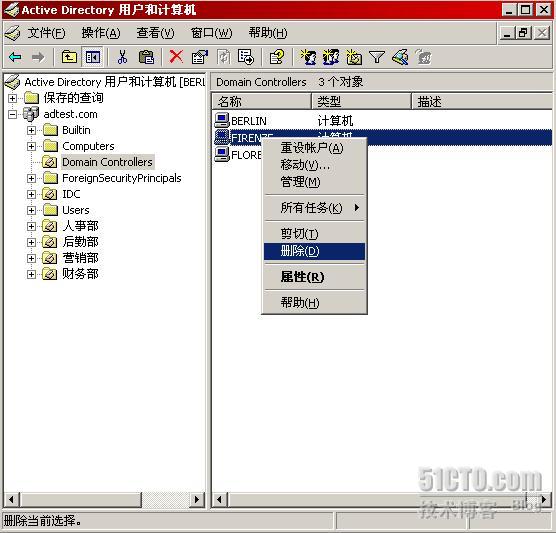 用户和计算机,如下图所示,删除域控制器