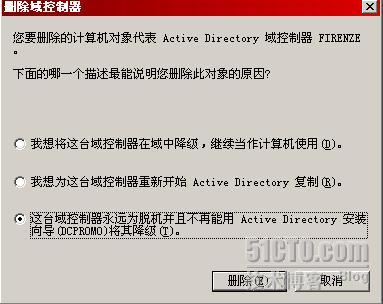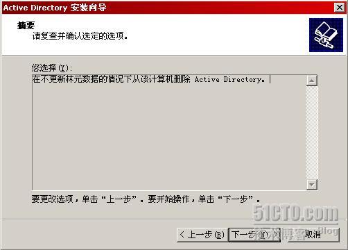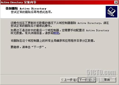 参数的作用就是执行强制卸载,如下图所示,卸载向导提示我们这种卸载方式将不对其他域控制器的