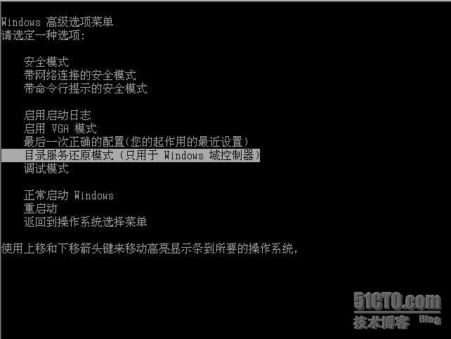 所带来的问题,如下图所示,我们通过目录服务还原模式可以顺利进入系统。
