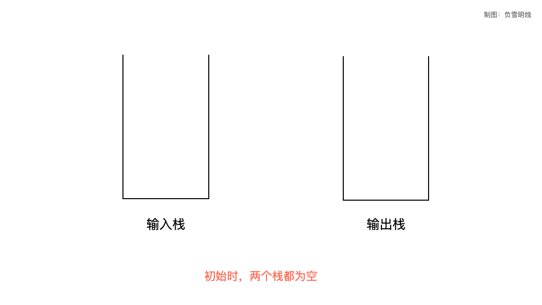- 可以把一个栈当做「输入栈」,把另一个栈当做「输出栈」。