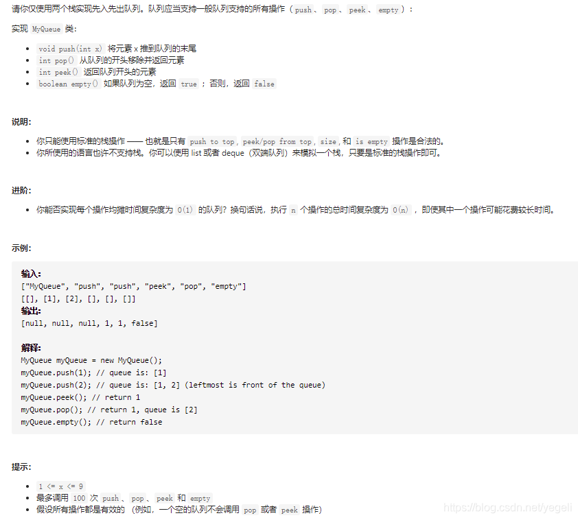 题目让我们用两个栈来实现一个队列,就是要让两个栈实现一个先进先出的数据结构。