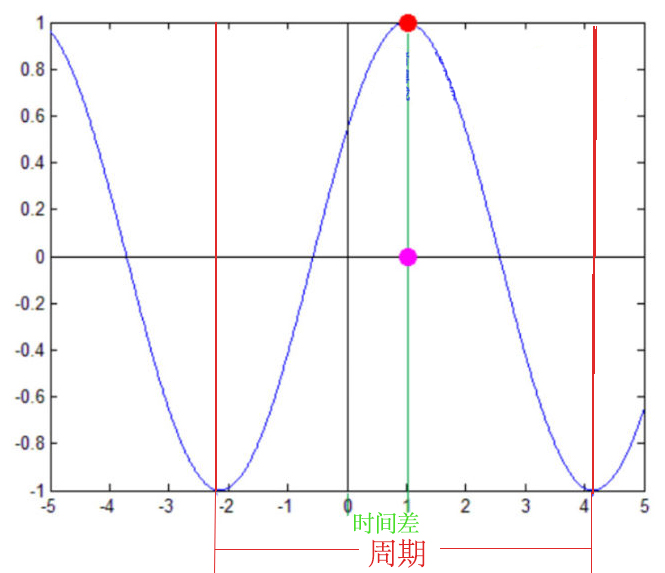 我依稀记得高中学正弦函数的是时候,\(\theta\)的多少决定了正弦波向右移动多少。当然那个时候横坐标是相位角度,而时域信号的横坐标是时间,因此我们只需要将时间转换为相位角度就得到了初相位。相位差则是时间差在一个周期中所占的比例