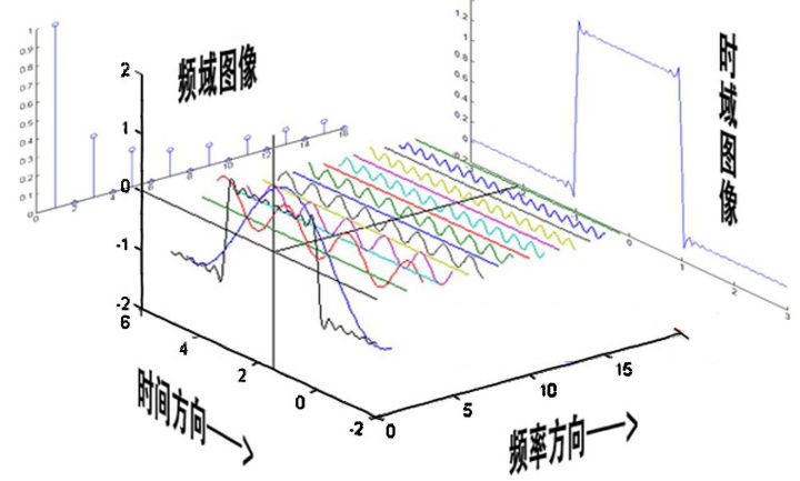 如图可知,通过时域到频域的变换,我们得到了一个从侧面看的频谱,但是这个频谱并没有包含时域中全部的信息。因为频谱只代表每个正弦波对应频率的振幅是多少,而没有提到相位。基础的正弦波\(Asin(wt+\theta )\)中,振幅,频率,相位缺一不可,不同相位决定了波的位置,所以对于频域分析,仅仅有频谱(振幅谱)是不够的,我们还需要一个相位谱。