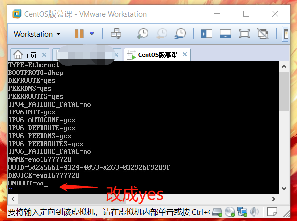 vi ifcfg-eno167777284.编辑下ONBOOT="no"改成="yes" 开启自动启用网络连接。然后:wq 保存退出