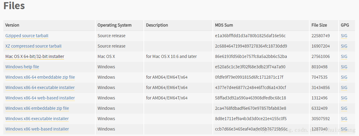 目前最新的版本为Python 3.6.2,下载地址:https://www.python.org/downloads/release/python-362/ 找到文件下载部分,如图: