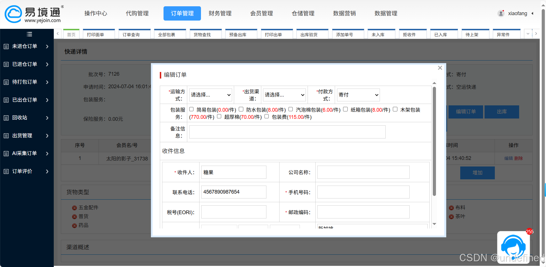集运行业增值服务日益多元,包装加固、优先配送、保险保障等定制化需求在提升客户体验的同时,也让费用核算复杂度陡增——手工计算易错漏、服务项目难追溯、账单推送不及时等问题长期困扰企业。易境通集运系统通过智能化财务模块,构建了从费用生成到支付核销的全闭环解决方案。