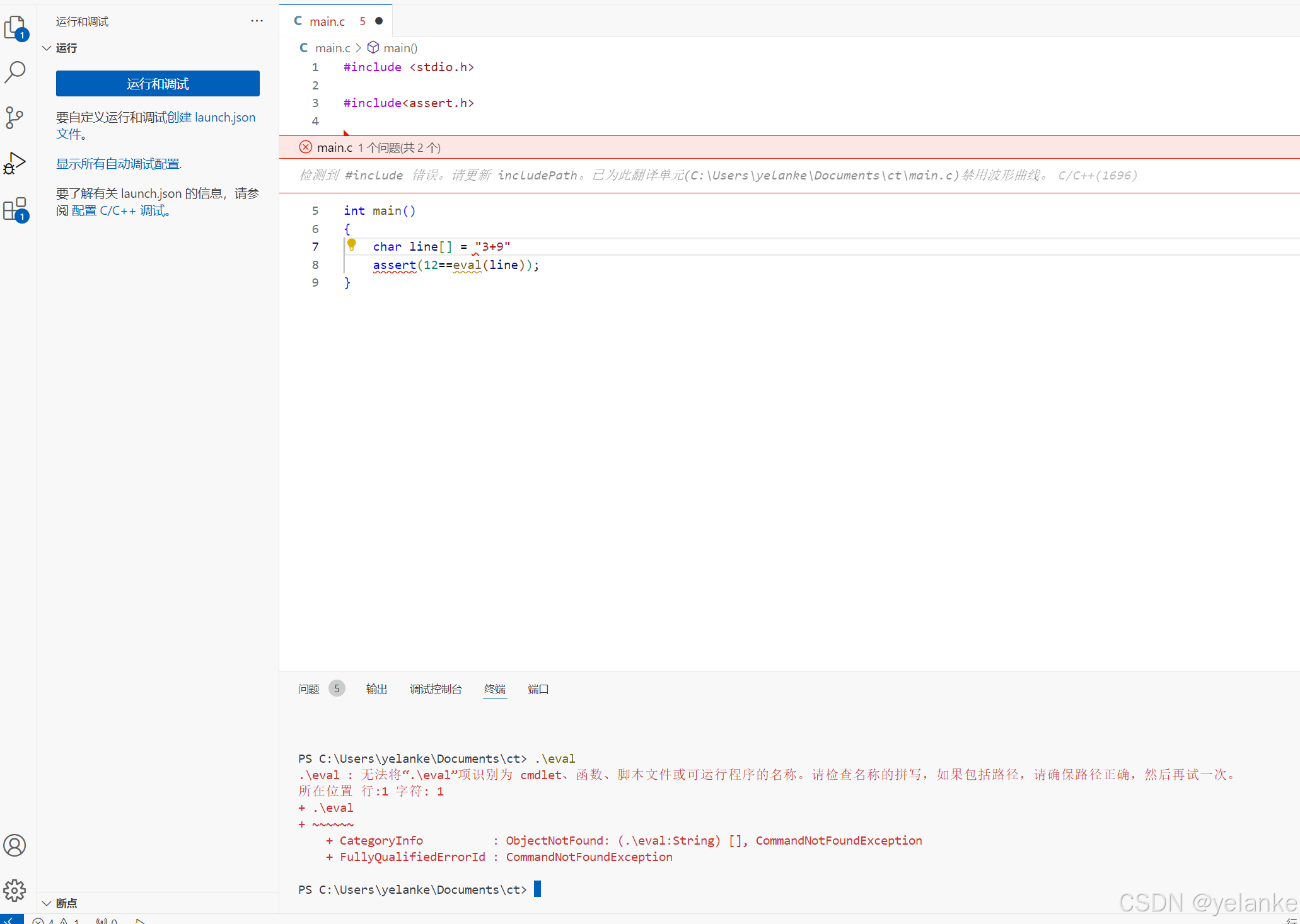 参考翁恺老师的课,新建了一个文件ct,然后打开ct,但是我没把其他三个代码复制到ct里,直接在终端输入了“gcc --version main.c -o eval",然后再查 .\eval 出现了这种情况,不知道该咋办了,然后那个mingw32-make 也不知道咋弄。