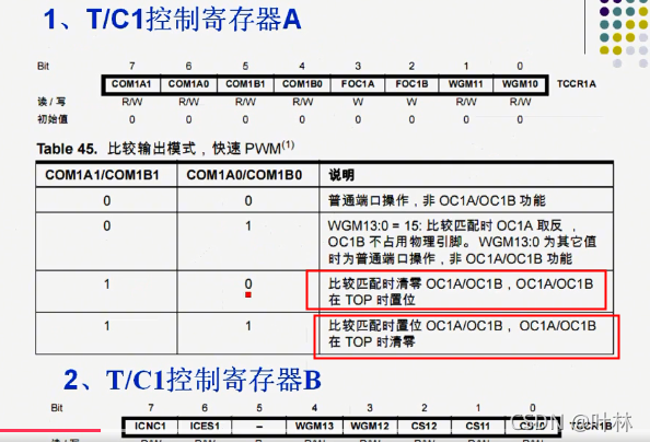三、PWM相位修正与快速PWM的区别(TCNTn快速变为0)。