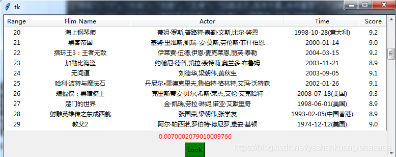 result.txt文件的数据来源是爬取猫眼电影前一百名的电影,而result2.txt文件只不过是内容上把result.txt的内容复制几十次,使其数据足够多,现截选如下: