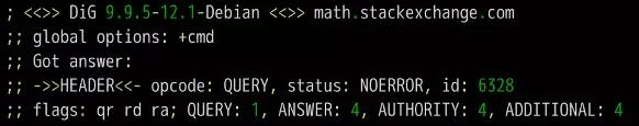 上面命令只返回math.stackexchange.com对应的4个IP地址(即A记录)。