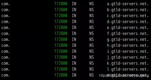 上面结果显示.com域名的13条NS记录,同时返回的还有每一条记录对应的IP地址。
