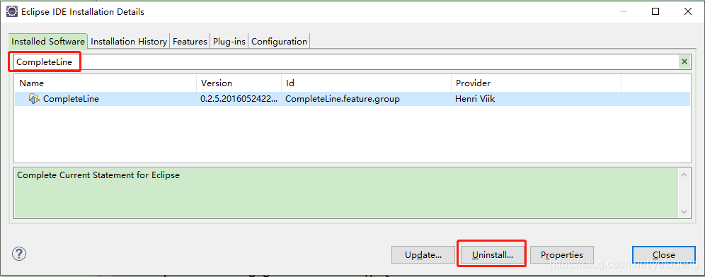 搜索需要卸载的插件名 CompleteLine , 选择卸载。