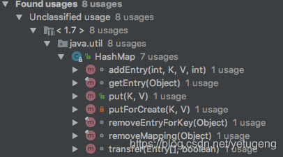 我们拿JDK 1.7的HashMap为例,其中定义了一个final int hash(Object k) 方法,其主要被以下方法引用。