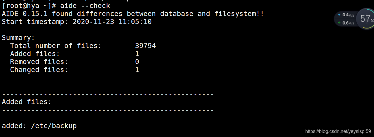[root@hya ~]# mv /var/lib/aide/aide.db.new.gz /var/lib/aide/aide.db.gz