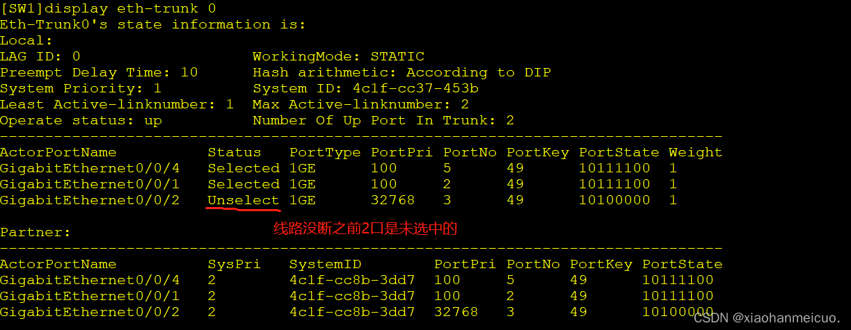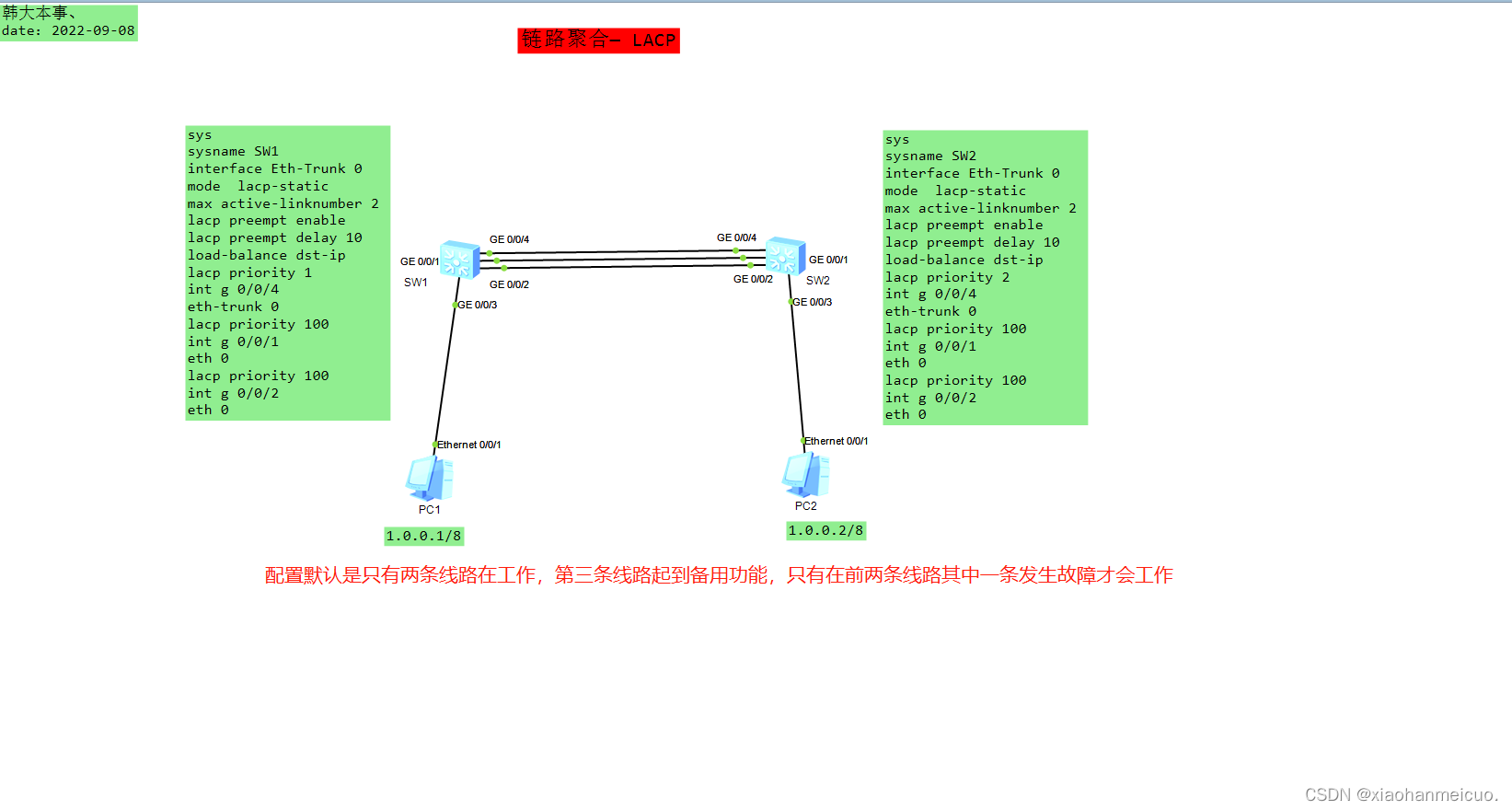 链路聚合必要条件两端配置(VLAN、Trunk、Hybird)必须相同。