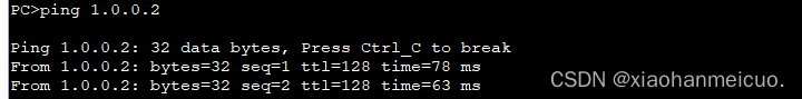 第二次我把G0/0/1口shutdown掉,再次ping对端如下图