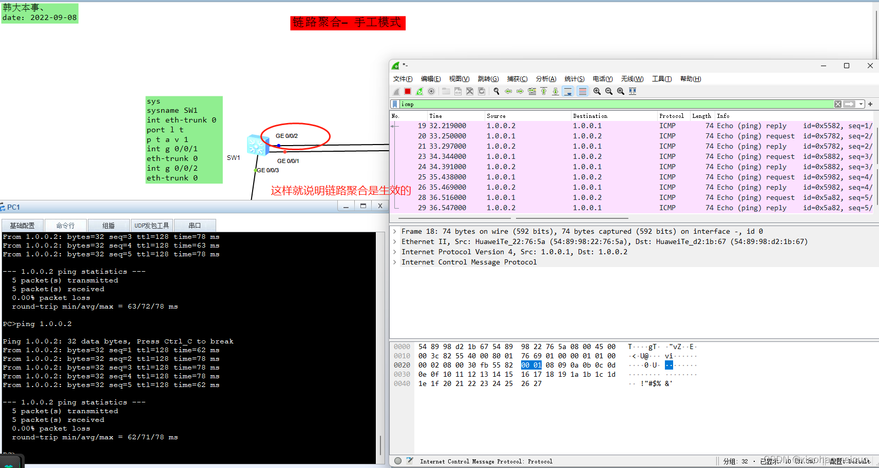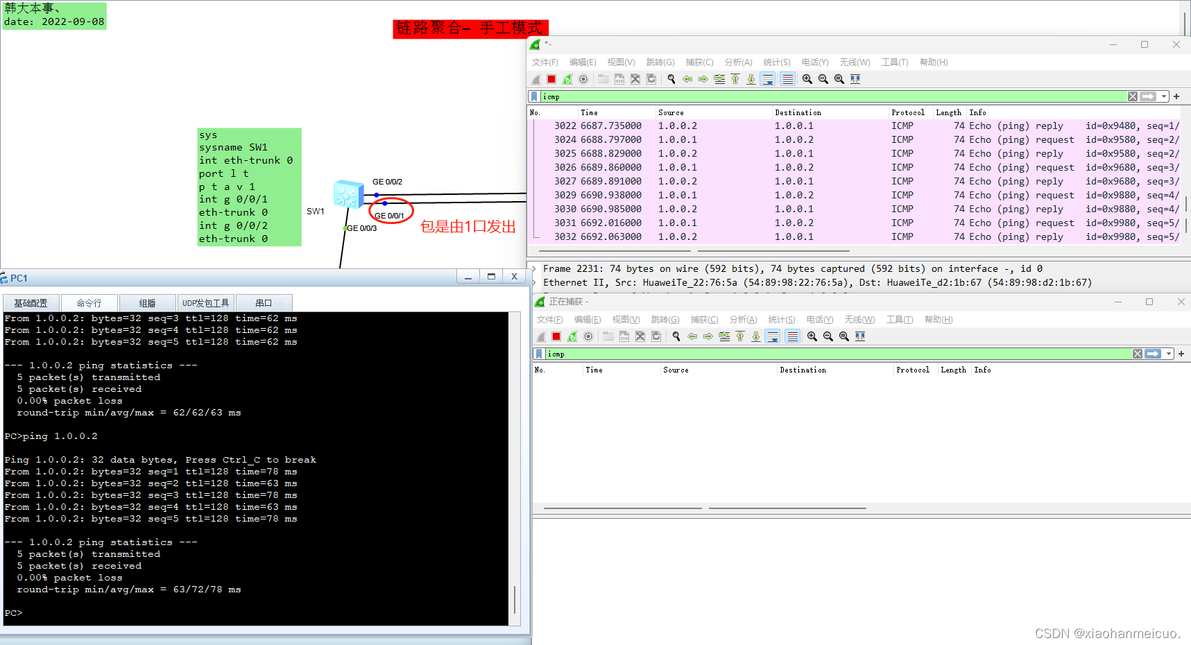 本文详细介绍了链路聚合技术,包括手工负载分担和LACP模式的比较,并通过实际配置命令和拓扑图展示了手工配置和LACP协议配置的链路聚合实验,验证了链路聚合在提高带宽、提供冗余和负载均衡方面的作用。