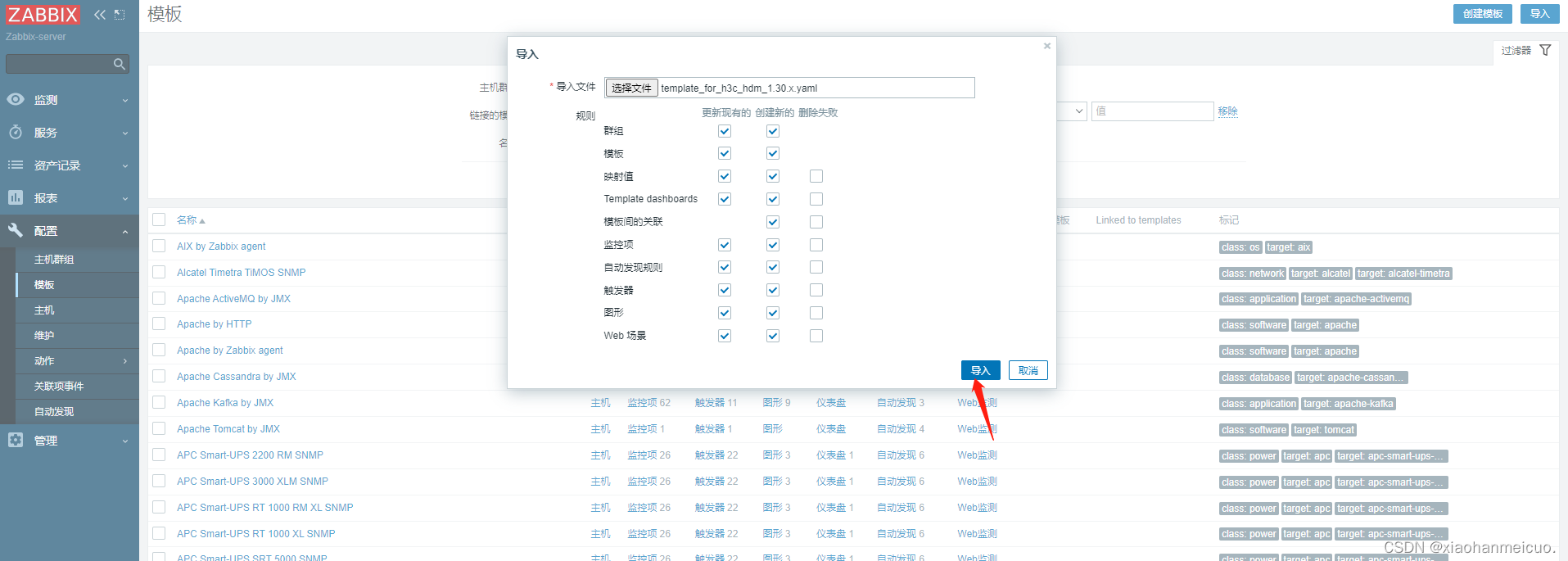 4.导入模板至Zabbix模板库