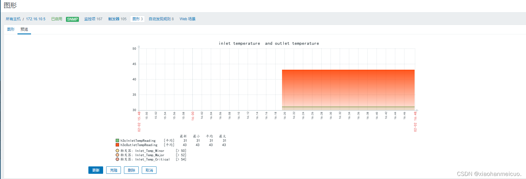 由于公司机房距离较远,导致无法直接知道服务器的健康状态、CPU、温度、电源等信息。于是便有了这篇实验,获取信息的方式跟网络设备基本一致,都是通过SNMP协议,唯一与网络设备不同的是服务器只能通过带外管理口才能获取数据而网络设备则任意端口都可以。需要注意的是配置Zabbix模板时必须关联与HDM版本一致的模板,或者根据H3C官网(HDM 1.11.32P01 版本软件及版本说明书-新华三集团-H3C)指示,将HDM版本更至最新。