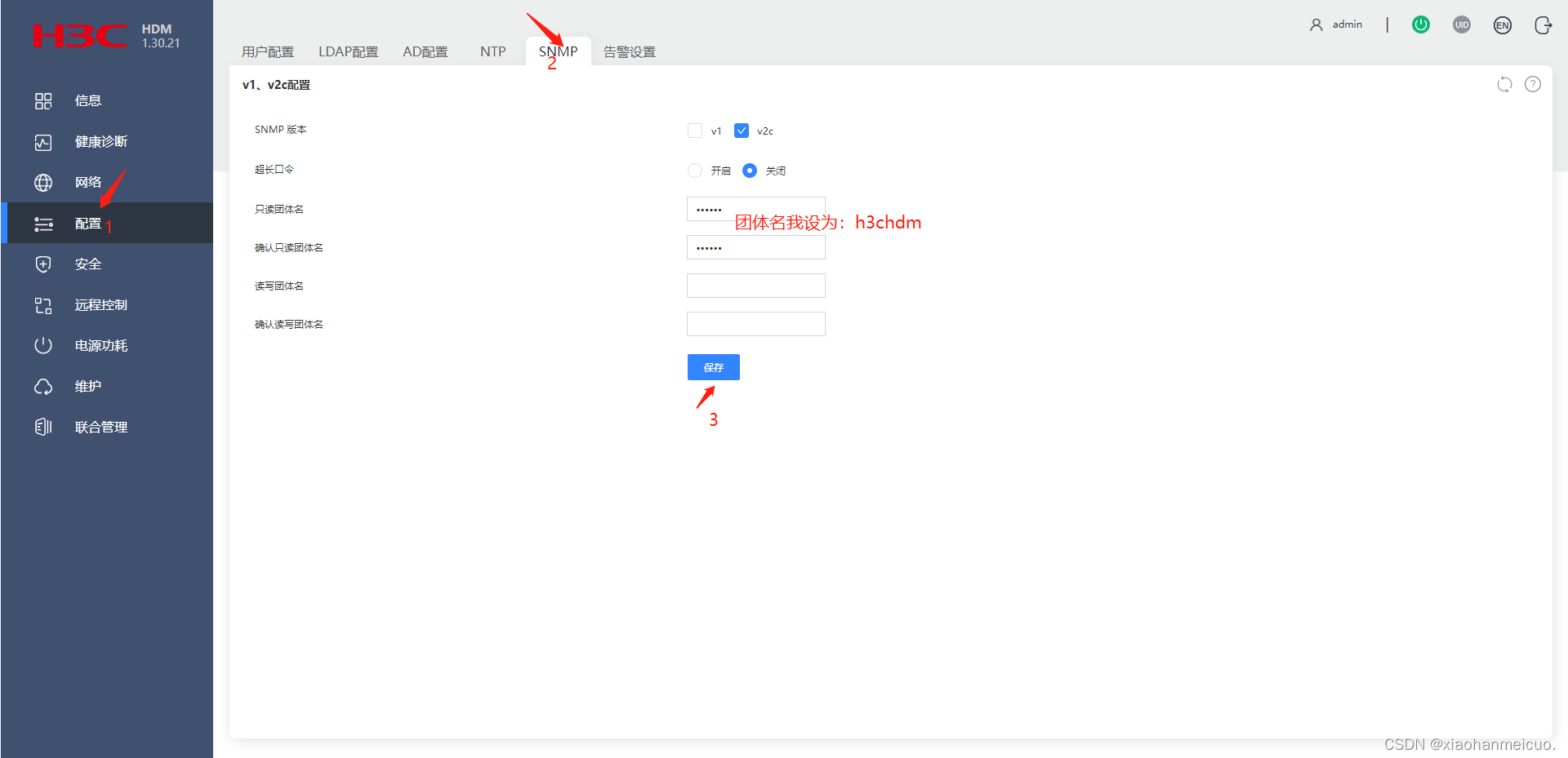 2. 开启SNMP服务并保存