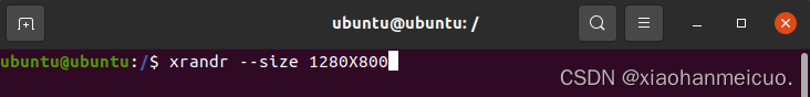 2. 终端输入 xrandr --size 1280x800 此命令是调整屏幕大小