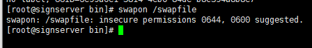 这里可以看到有一个提示:swapon: /swapfile:insecure permissions 0644,0600 suggested。 这个 /swapfile的权限设置建议设置成0600。