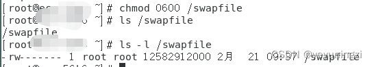 通过命令chmod 0600 /swapfile来改变文件权限。然后查询到权限为-rx-------即可