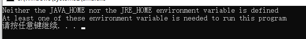 报错为:Neither the JAVA_HOME nor the JRE_HOME environment variable is defined