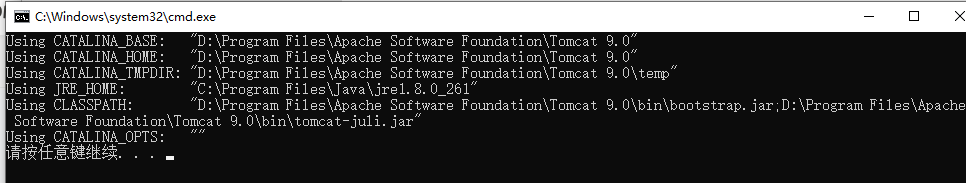 问题表现:tomcat 9.0.46 windows版本启动 start.bat时 一闪而过