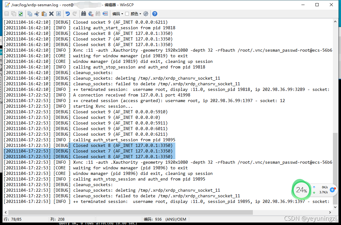 查看日志/var/log/xrdp-sesman.log文件发现::