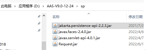 过程中我还尝试将原本AAS的lib下的 jar删除,然后将需要的jar包放到lib对应位置,发现也能解决这个问题,不过还是建议不主动修改AAS本身的jar包,冲突的,需要的 放sp目录下就行。