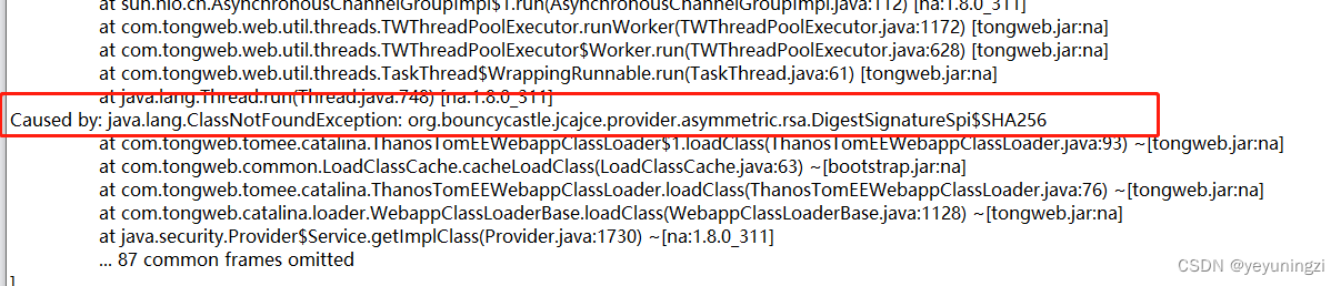 3、Caused by: java.lang.ClassNotFoundException: org.bouncycastle.jcajce.provider.asymmetric.rsa.DigestSignatureSpi$SHA256