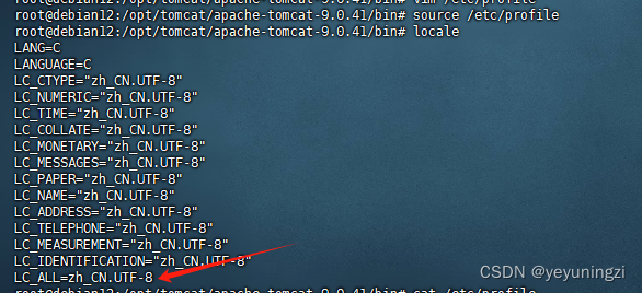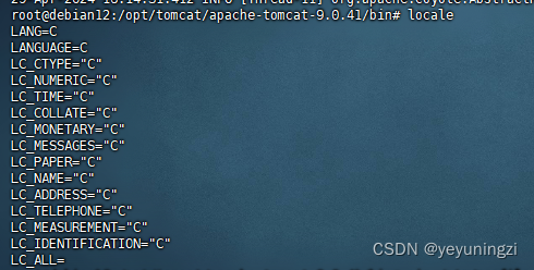 Debian 12 linux操作系统中,tomcat 9 catalina 启动日志输出 中文乱码