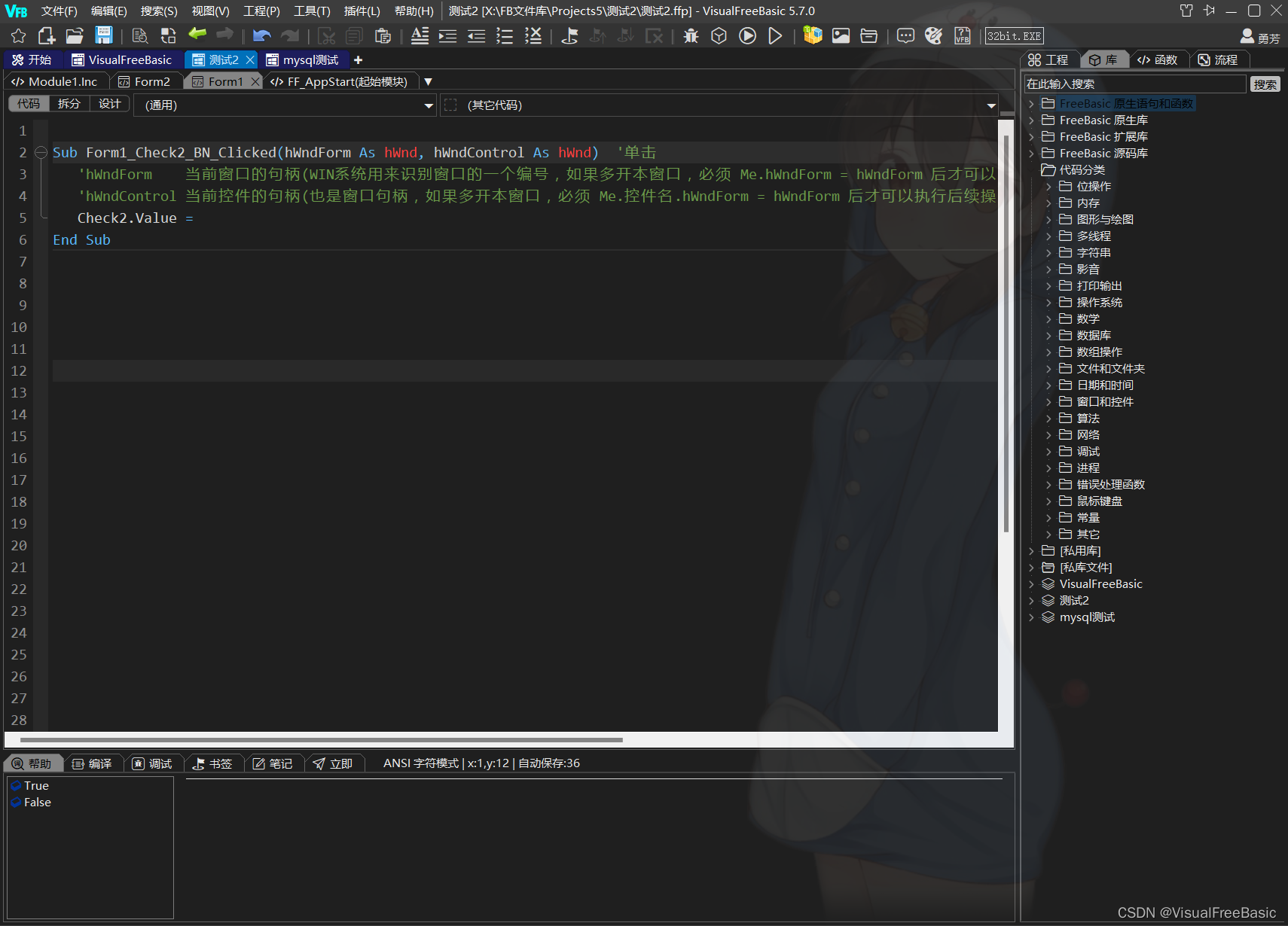 VFB作为VisualFreeBasic的主程序,负责整合控件、插件及功能。依赖的关键组件包括sqlite3.dll(数据库支持)、mCtrl.dll(控件支持)、Scintilla32.dll(代码编辑器)、mb.dll(Miniblink浏览器控件)。它还包含多个文件夹,如FB编译器、帮助文档、本地化语言、私库、项目、模板、插件、控件、备份、设置和功能DLL,提供全面的开发环境。