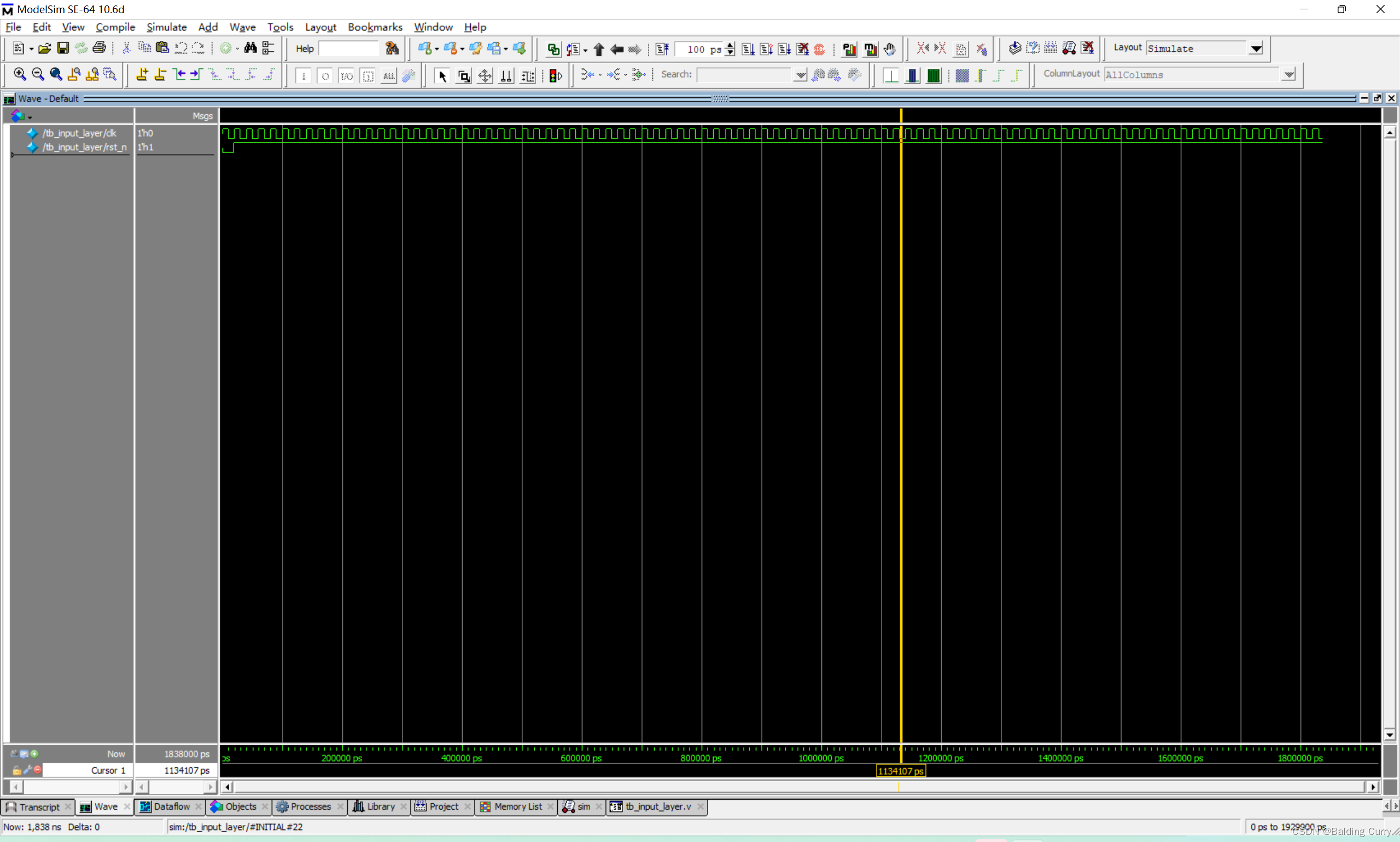 如果没有Error,将会打开ModelSim窗口,如下图所示。