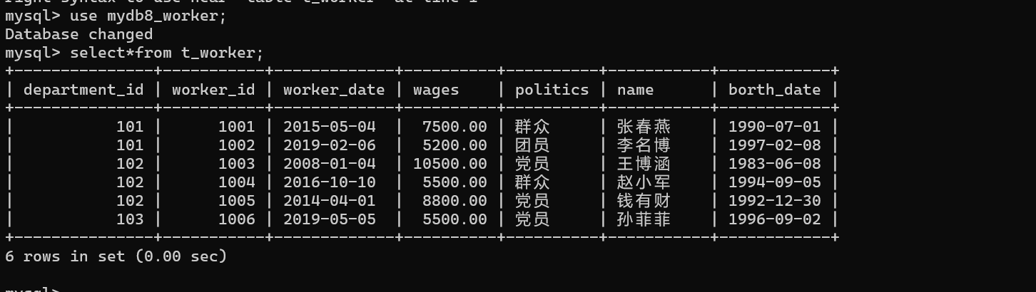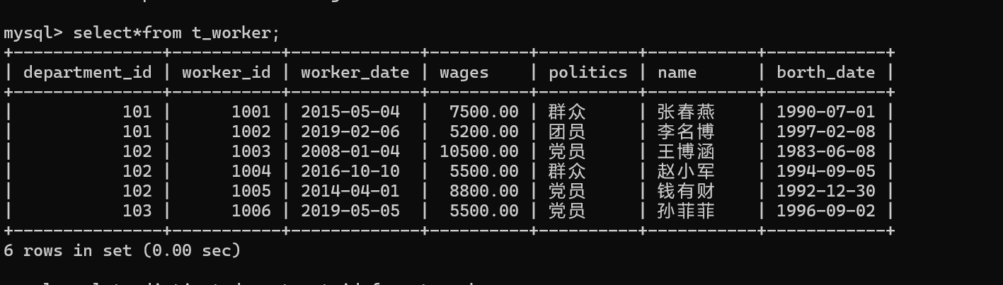 select * from t_worker;