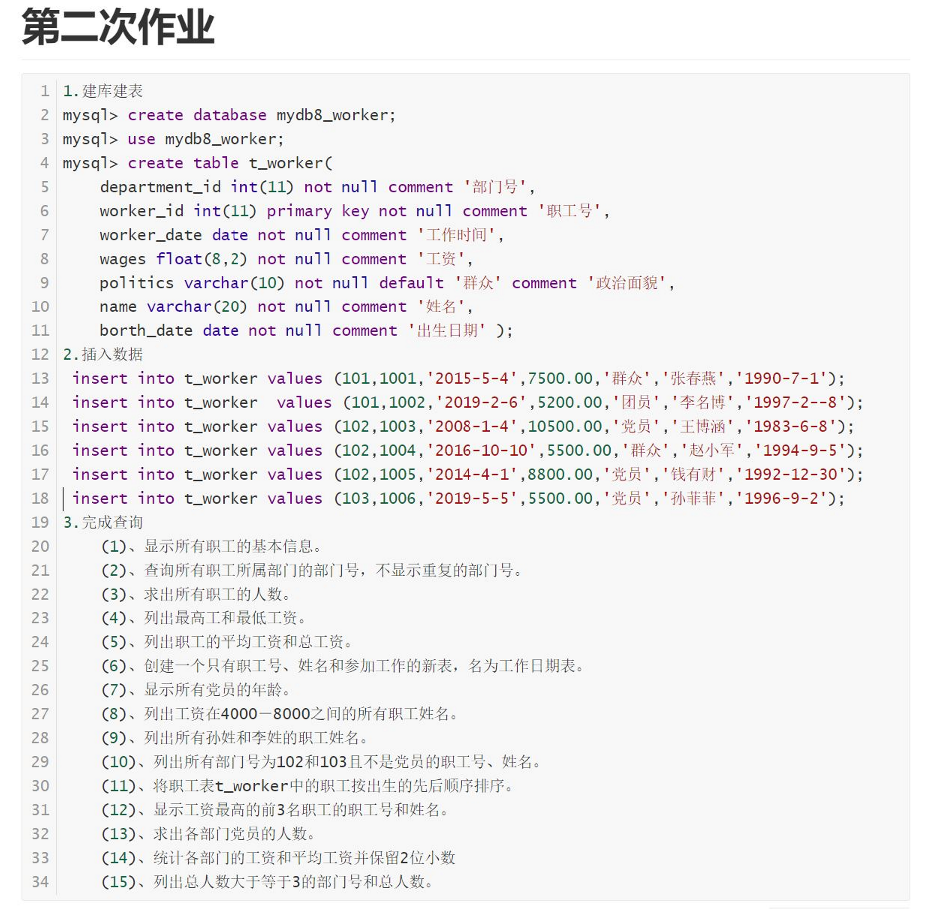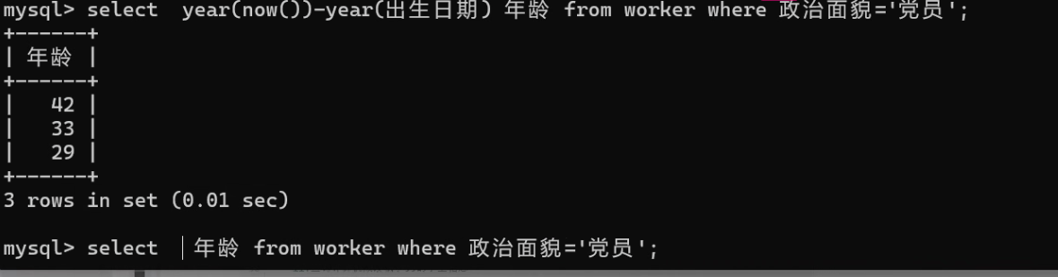 select year(now())-year(born) age from worker where politics = '党员';