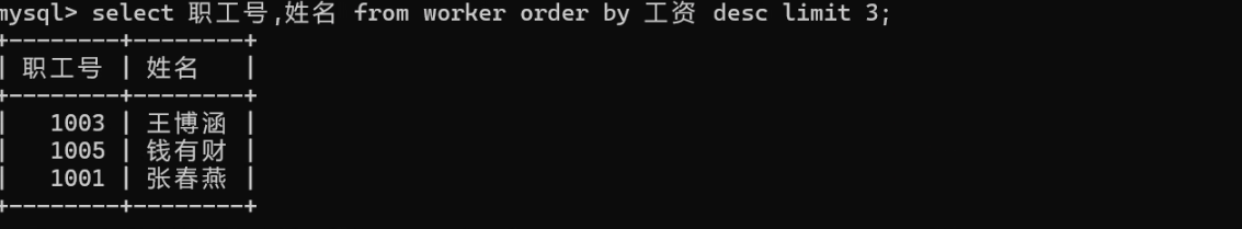 select worker_id, name from t_worker order by wages desc limit 3;