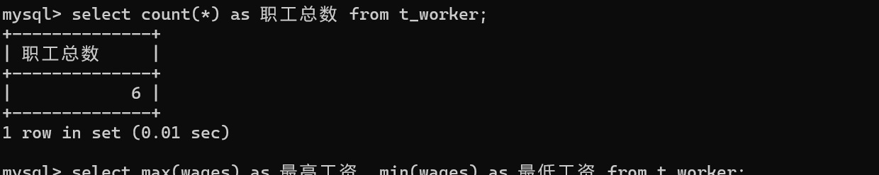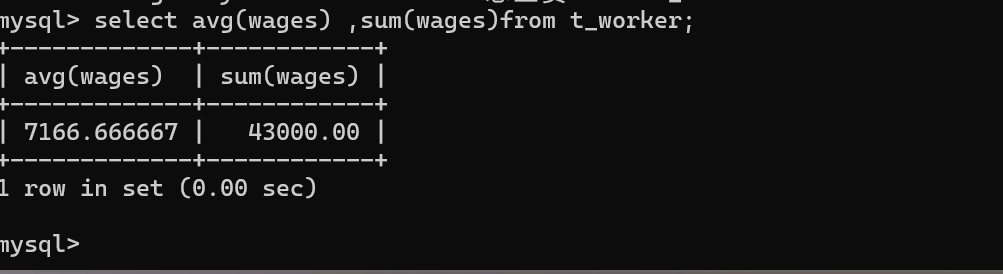 select avg(wages),sum(wages)from t_worker;