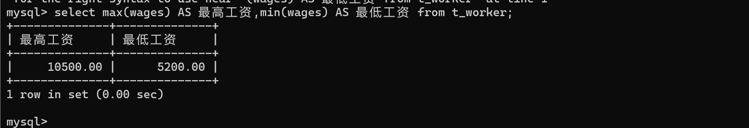 min(wages) as min_wage from t_worker;