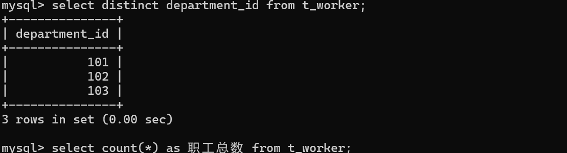 select distinct department_id from t_worker;