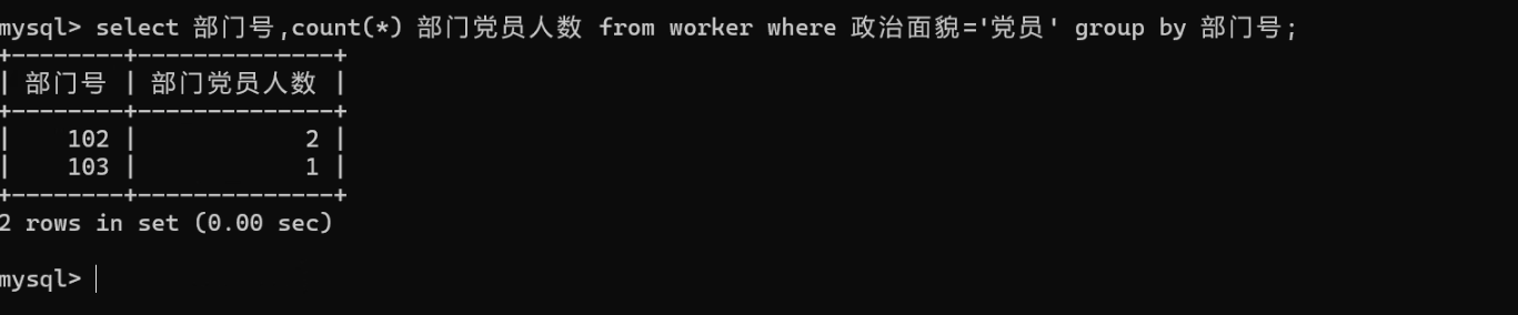 from t_worker(avg(工资),2) from where politics = '党员'group by department_id;